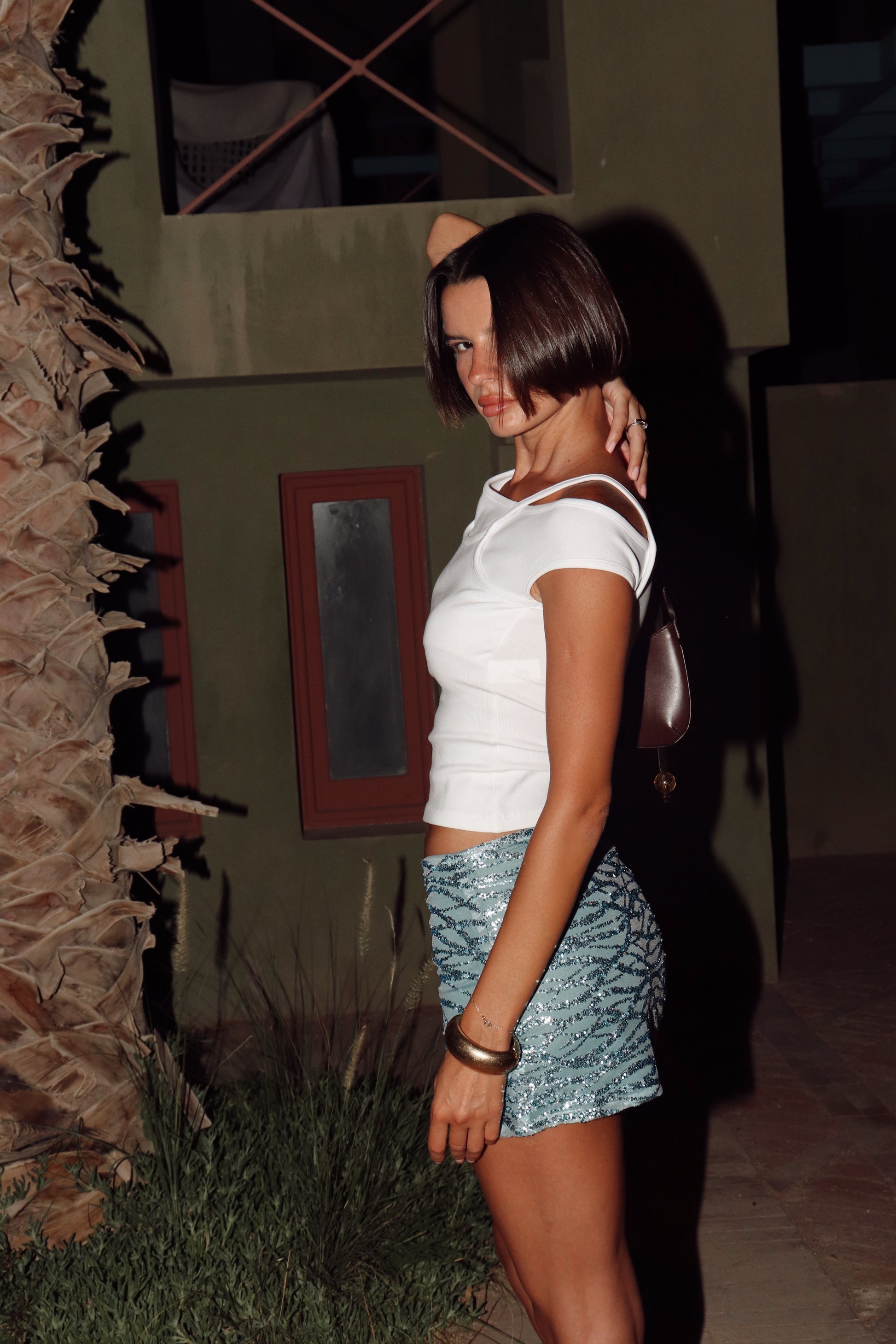 As if dipped in sea spray and sunlight, the Seafoam Sequin Mini Skirt captures that just-out-of-water glow. With every step, the sequins catch the light like ripples in the tide. Pair it with anything barefoot or bold—it’s the kind of skirt that doesn’t need much else.
